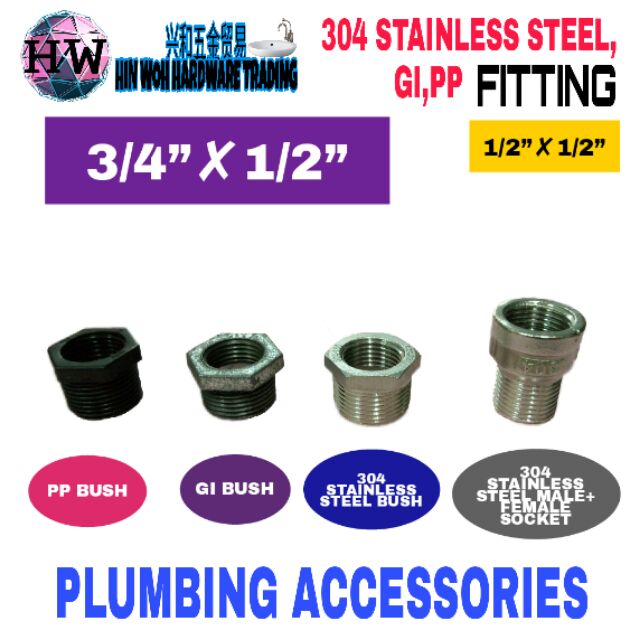 3 4 1 2 Bush 1 2 1 2 304 Stainless Steel Male Female Socket Fitting Shopee Malaysia